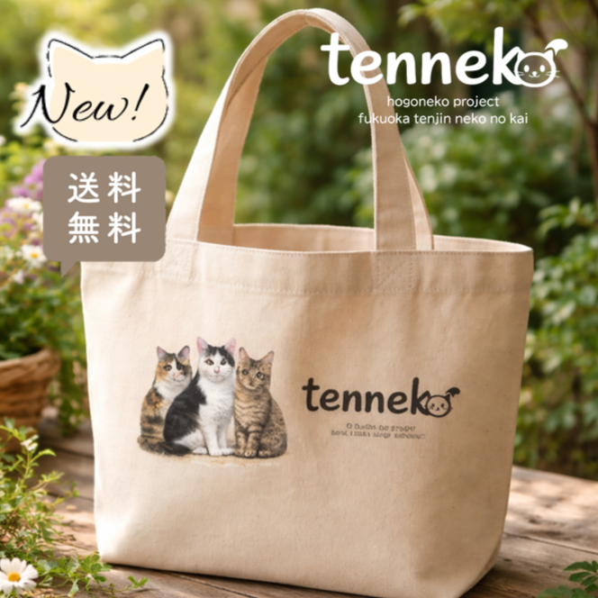 今回販売をスタートした『tennekoトートバッグ』は、 保護猫活動の始まりのきっかけとなった3匹をモデルにしたオリジナルグッズです🐱